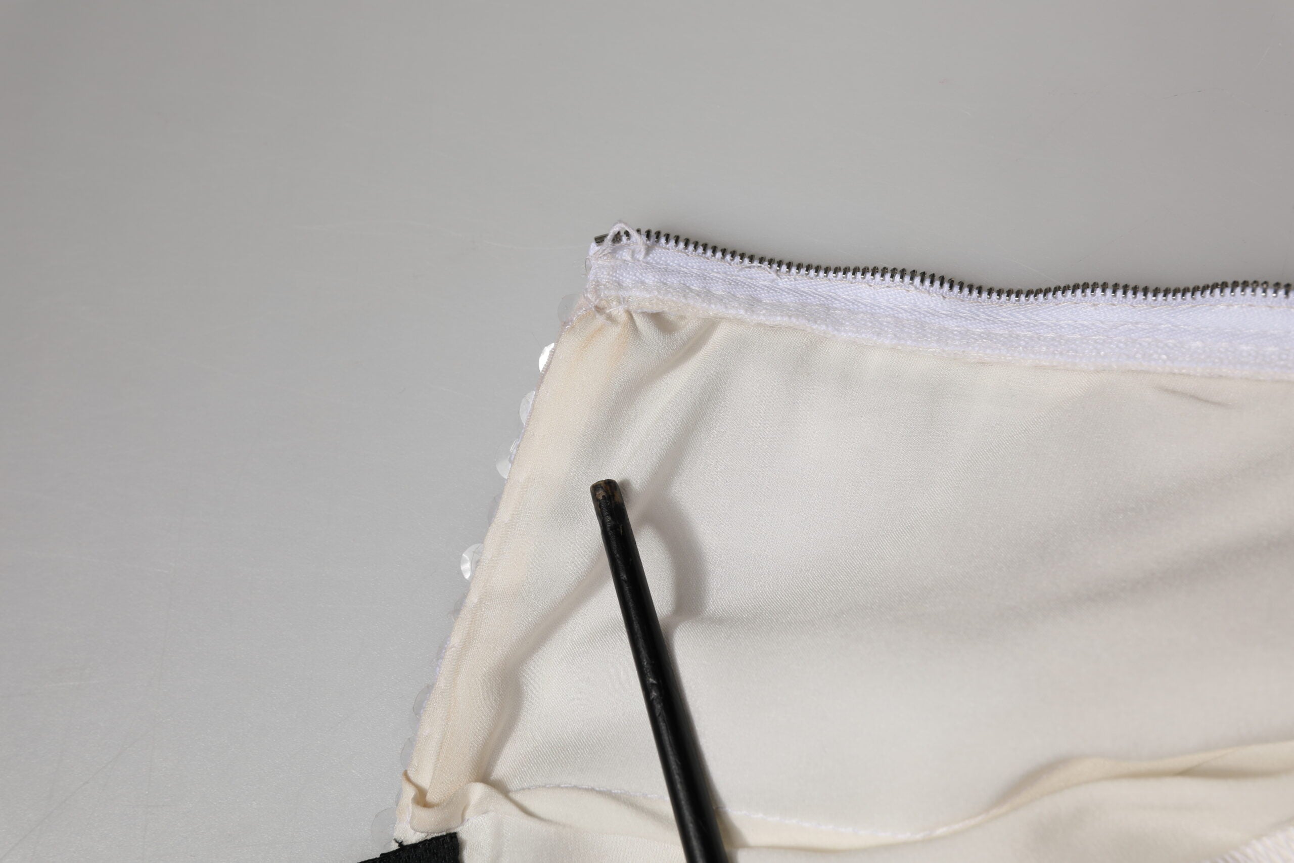 This item has a minor defect, there are stains on the inner lining (see pictures for details).